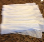 Well, I am going to try to have one new technique or tip every Thursday and/or Friday. Sew….I decided to try “snow dyeing’ some fabric. Right, Houston has so much snow! OK, well, ice from the grocery store might work, don’t ya all think??? So, here I go. I cut 5 one yard pieces from a Prepared For Dyeing Fabric and soaked them in Soda Ash for about 15 minutes. Then I folded one piece in quarters and pleated it. The second piece I wrapped with rubber bands. Both of those pieces I placed in the bottom of my large dyeing container. By bracing it on small bottles, I floated a grid on top and placed three more pieces of treated fabric on the top. Then I took about 5 colors of dye – still in powder form – and carefully sprinkled the colors over the top of the entire container. THEN…..ta da….I covered the whole thing with 20 lbs. of cubed ice, covered it all with some plastic wrap, and plan to check it around 24 hours from now. So, we shall see how “Houston’s” version of snow dyeing works. I have included a gallery of pictures showing the process. Enjoy. Until tomorrow…BE HAPPY!