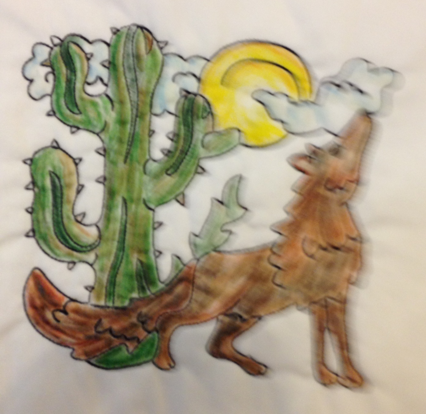 Howling at the Moon 1 Published January 12, 2013 at 1392 × 1354 in Using colored pencils with embroidered redwork